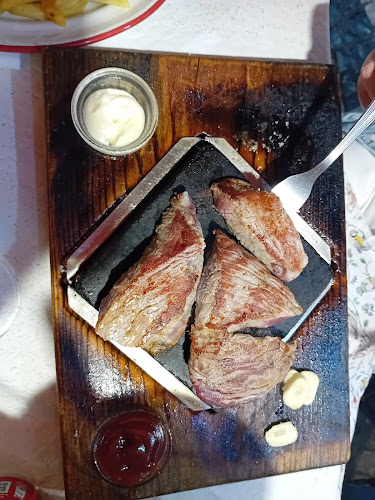 A comida parece ser um dos pontos altos. Muitos falam sobre pratos saborosos e bem preparados, como a moqueca de tamboril e o famoso naco na pedra — um verdadeiro espetáculo para o paladar. A atmosfera é descrita como acolhedora, perfeita para um jantar em família ou uma refeição casual com amigos. O que realmente brilha, em meio a algumas críticas sobre o serviço, é o atendimento simpático de alguns funcionários, como a D. Arminda e o Flávio, que deixam uma boa impressão.