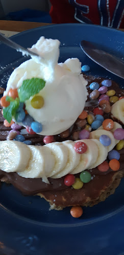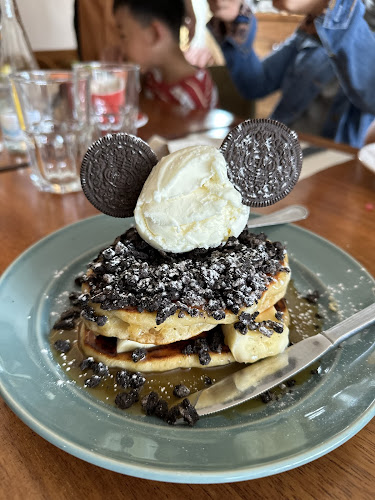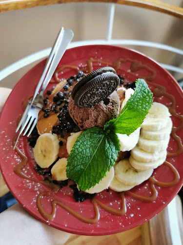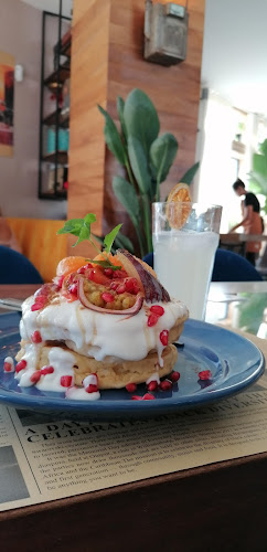 A atmosfera? Ah, é tudo que você espera de um café moderno, mas ainda assim, com um toque pessoal. Imagina-se sentado em uma cadeira confortável, saboreando panquecas enormes com Nutella ou uma deliciosa tosta de camarão. O lugar é super bem decorado, tem luz natural que entra pelas janelas, e para quem curte um café da manhã prolongado, é um prato cheio. E a música ambiente? Um toque especial que faz você querer ficar mais um pouquinho.