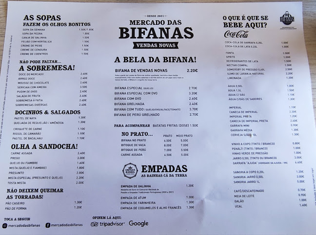 Eu já estive lá várias vezes, e a experiência é sempre a mesma: bifanas maravilhosas! O atendimento? Ah, esse é 5 estrelas! Funcionários super simpáticos que fazem você se sentir em casa. A sopa? Boa demais! E o melhor, os preços são acessíveis. Você consegue um jantar delicioso sem estourar o orçamento.