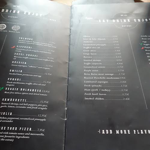 As pizzas? Ah, são uma delícia! Feitas em forno a lenha, têm aquela massa fina e crocante que, diga-se, quase derrete na boca. Além das clássicas, também têm umas combinações com ingredientes locais que fazem você sentir um gostinho especial de Portugal. Já experimentou a calzone? É uma maravilha.